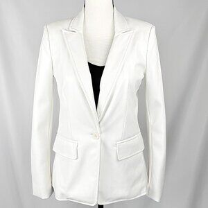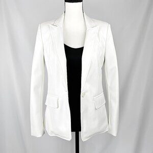 Central Park West White Faux Leather Blazer with Removable Gray Dickie, Size S