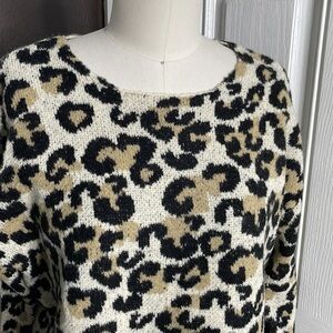 So soft. Leopard print sweater. Split hem. Pull on style. Very good used condition.