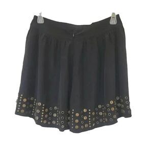 Central Park West Women's Black 100% Silk Studded Lined Mini Skirt EUC sz XS