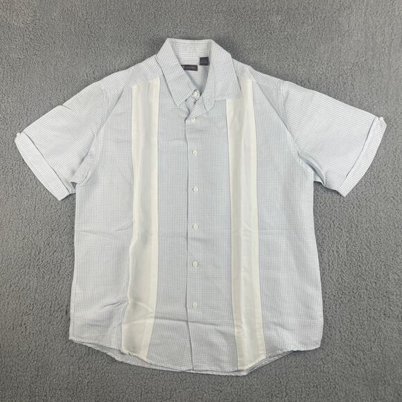 Centro Men's Large White Blue Striped Pattern Short Sleeve Button Up Shirt