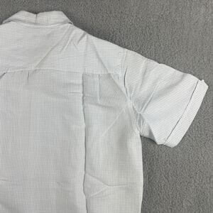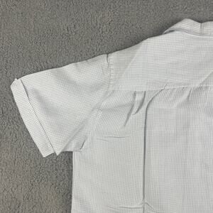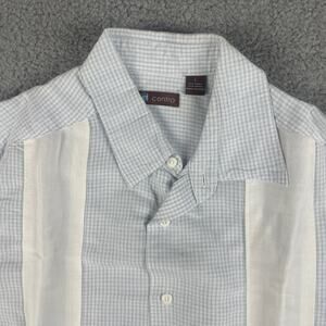 The item you are looking at is a pre-owned Centro Men's Large White Blue Striped Pattern Short Sleeve Button Up Shirt