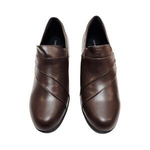 Centro Point Womens Brown Block Heel Loafers Size 8.5 Leather Slip-On