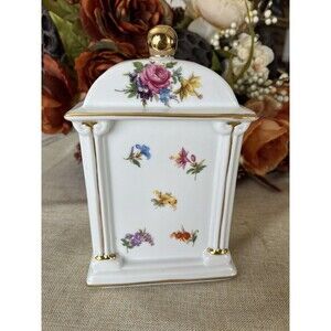 Centurion Hand-Painted Victorian Pillar Style Mantel Clock – Gold Trim Porcelain