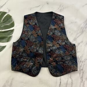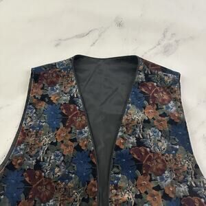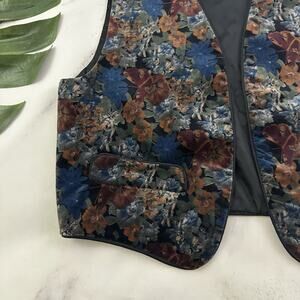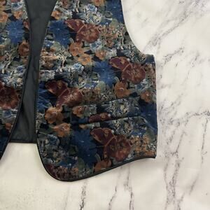 Century of Boston women's vintage 90s black and brown floral butterfly print velvet vest, size M. It is free from any rips or stains. It measures about 32 inches around the bust and is about 19 inches long.
