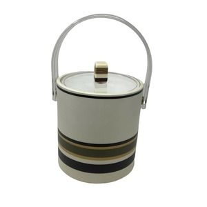 Cera ivory brown stripe MCM ice bucket bar ware vintage
