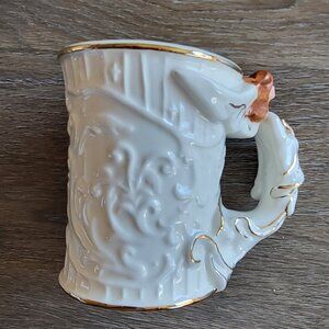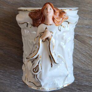 Pacific Rim Angel Handle Ceramic Mug for hot beverages. Beautifully painted with gold trim. Check out the detail on the angel’s face!