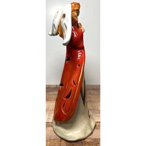 This ceramic angel tealight holder serves as an elegant decoration, casting a warm glow through its star and script cutouts. Designed to be a centerpiece, it adds a refined touch to any holiday setting. Its intricate details and quality craftsmanship are sure to be appreciated by discerning buyers.