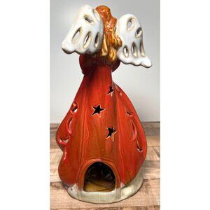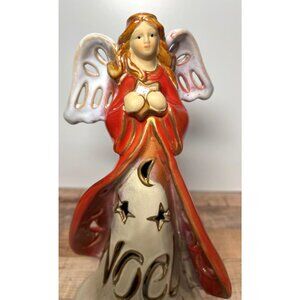 Ceramic Angel Tealight Holder With Cutouts & "Noel" Script