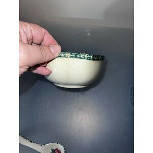 Ceramic Apple Bowl w/Spoon Condiment Serving Dish Spongeware Green & Red