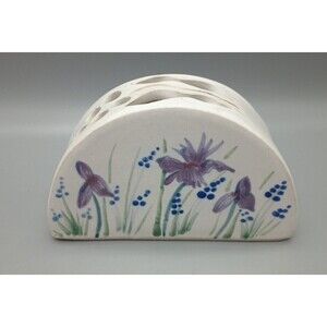 This exquisite ceramic vase is a true masterpiece of art, featuring a beautiful iris and bluebells hand painted on its surface. The vase has been expertly hand thrown, crafted from high-quality ceramic material, an unmarked brand. Its multicolor floral pattern is truly mesmerizing, making it the perfect addition to your home decor.