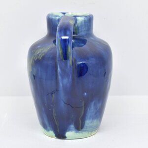 Ceramic Art Pottery Pitcher, Signed, Blue Drip Glaze, 4" Tall