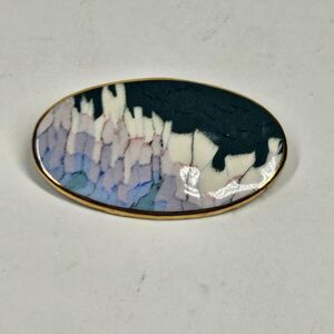 Ceramic Artist Pin Handmade Oval Abstract Landscape