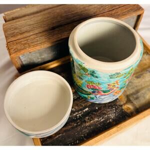 Ceramic Asian Tea Jar with Lid Hand Painted Antique Tea caddy Ginger Jar