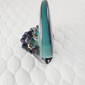 Ceramic Backflow Incense Burner Crescent Moon Lotus Waterfall Koi Fish Blue