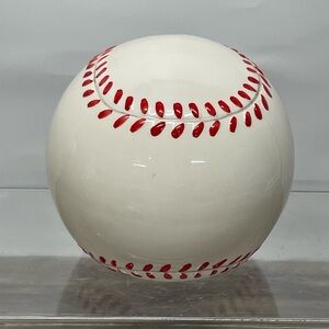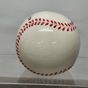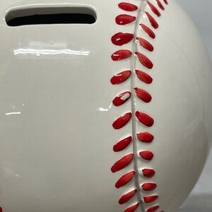 Ceramic Baseball Piggybank White with Red Stitch.