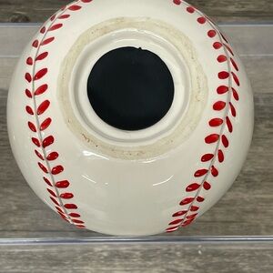 There is a small chip in red stitching as shown in photo. Otherwise piggybank is in good condition and such a neat piece for a little boys baseball themed bedroom. Either for decoration or to use a a change saver.