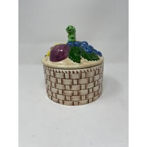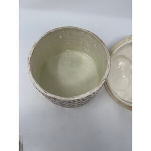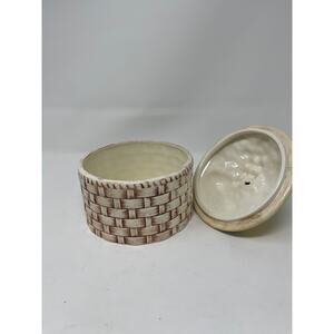 Ceramic Basket Canister Daisies & Caterpillar Lid - Vintage 1973 Pottery -Signed
