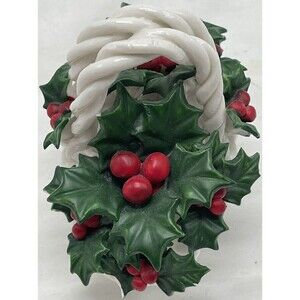 Ceramic Basket of Holly & Berries Christmas Holiday Decor Hermitage Pottery. Measurements photographed. See pictures, please. Ships quickly