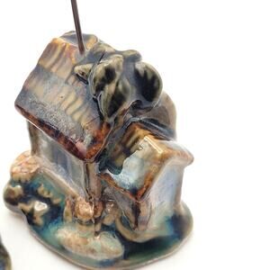 Set of 2 ceramic photo or memo holders with coastal-style beach cottages.