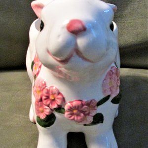 Ceramic Bloom Rite Bunny Planter with Pink Flowers