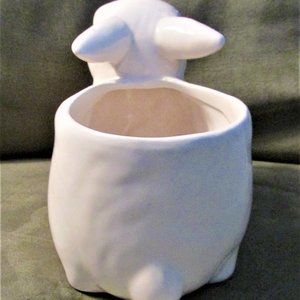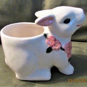 This Ceramic Bloom Rite Bunny Planter with Pink Flowers is used but in great condition. No chips or cracks we can see. The bottom is slightly marked from use. Please inspect all pictures for condition details. A great addition to your Easter or spring décor.