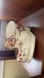 Charming ceramic boot planter with a floral design. Features orange and brown accents on a white base.