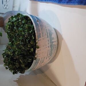 Teal Blue and White ceramic planter/ flower pot/ bowl in excellent condition. No cracks, chips or stains..