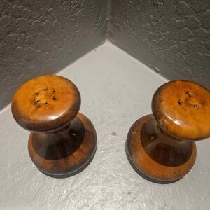 Ceramic Brown Glazed Salt and Pepper Shakers 4.5" Wood like 70s