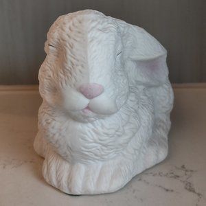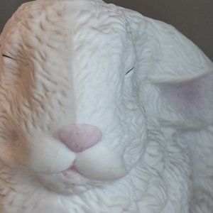 Vintage 1987 dozing ceramic bunny planter container is 7.5" x 4".