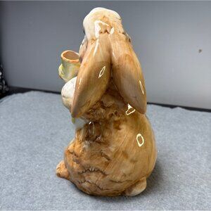 Ceramic Bunny Figurine with Bow - 10" Tall - Adorable Rabbit Home Decor