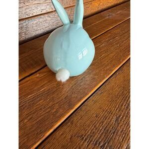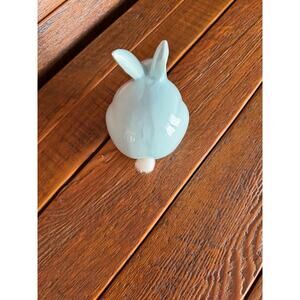 Ceramic Bunny Rabbit Figurine Light Blue Whimsical Easter Spring Decor