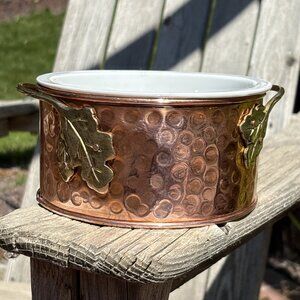 Ceramic Casserole Dish Solid Copper Holder & Brass Handles Small Dip Chafing