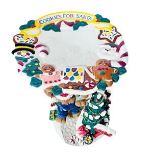 Ceramic Christmas Bear Stand and Cookie Plate with "Cookies For Santa" design, measures approximately 13" tall. Comes with the original box and is in excellent condition with no chips or damage. A charming holiday display piece perfect for Christmas traditions.