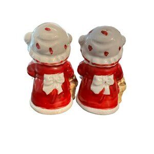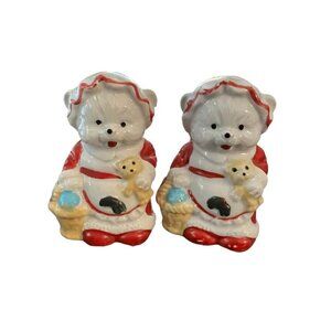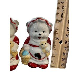 Ceramic Christmas Holiday Bear Holding Teddy Bear Salt and Pepper Shakers
