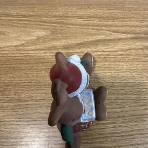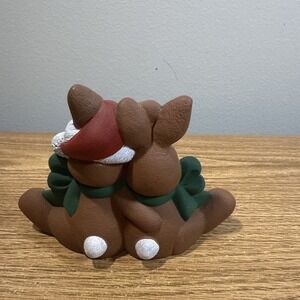 The product is a ceramic Christmas rabbit figurine, featuring a brown color and a painted finish. It is part of a collection of animal figurines, specifically depicting a rabbit as the subject. This collectible item is perfect for holiday and seasonal decor, adding a festive touch to any space with its charming design.