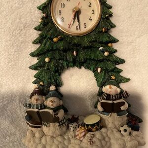 Runs on AA battery. Christmas tree with snowmen carolers. Very good condition. I tried to video it running but I was unsuccessful in adding the video to the post. Measures 10 inches tall, 6.5 wide.