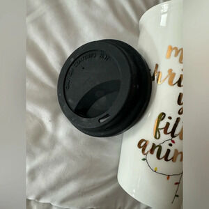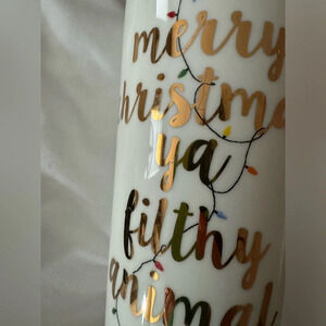 ‘Merry Christmas ya filthy animal’ coffee cup with rubber lid.