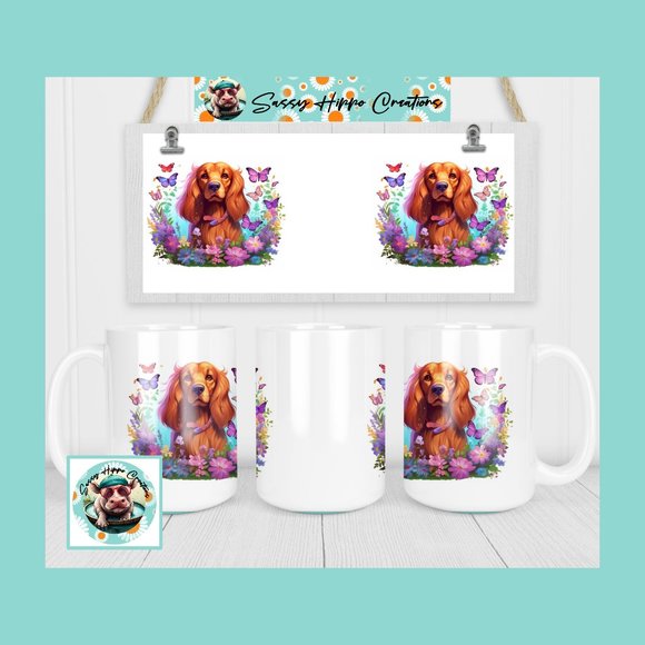 Ceramic Coffee Mug Cocker Spaniel Puppy Dog Butterflies Flowers 15oz Hand Sublimated by Sassy Hippo Creations