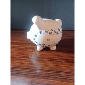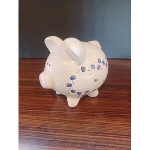 The pig is free of chips and cracks. Good preowned shape. The side says 65 Roses Collection and the other side says Bill. With a number small 28911. The pig is white with blue roses all over it. Please look at pictures for condition Any Questions Please Ask Thanks