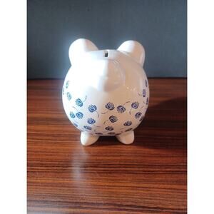Ceramic Coin Bank Pig "Bill" & 65 Roses Collection Blue & White