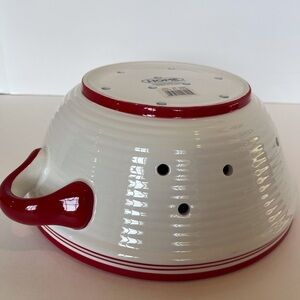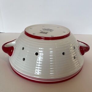 Ceramic Colander Cheery Red and White Decorated with Cherries