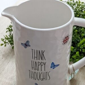 Harvest Green Studio England "Think Happy Thoughts" Ceramic Butterfly Pitcher..