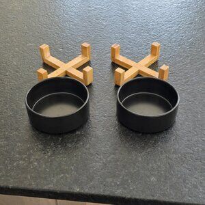 Ceramic Dog Bowls with Wooden Stand - Set of (2)