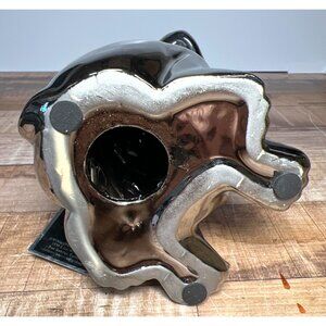 Elevate your home's ambiance with this artisan ceramic fragrance diffuser, meticulously crafted to release sophisticated mahogany teakwood notes through an intricate, reflective canine-shaped design. Sachet not included, 6'' Tall