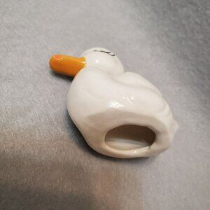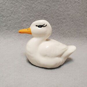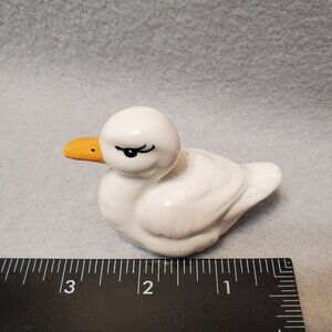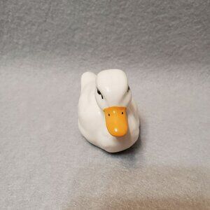 Ceramic Duck Figurine 3 Inch Hand Painted White Orange Beak Collectible Vintage