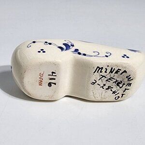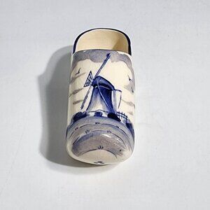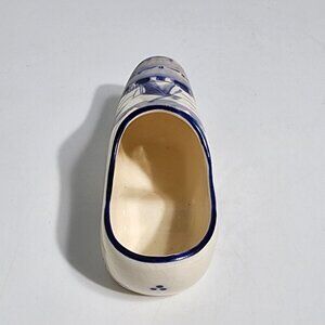 Ceramic Dutch Windmill Painted Clog Shoe Planter Japan Blue White VTG