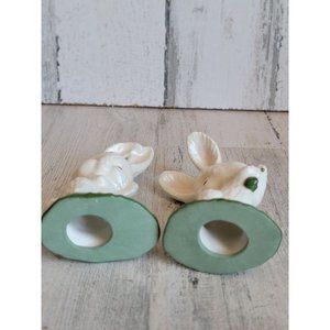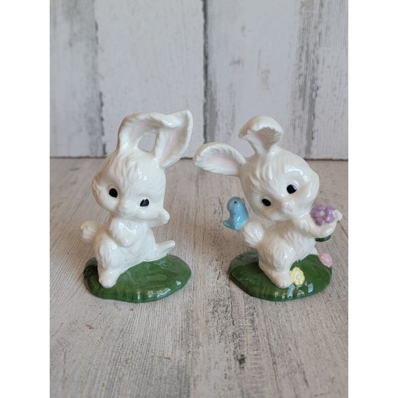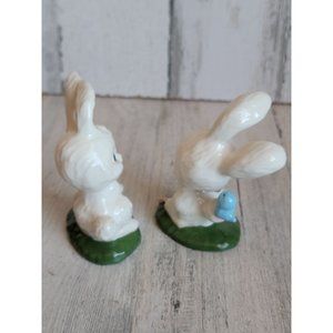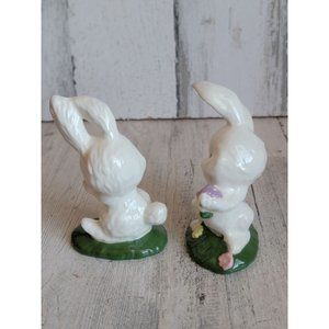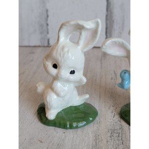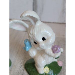 Ceramic Easter Bunny mini rabbit couple bird flower set