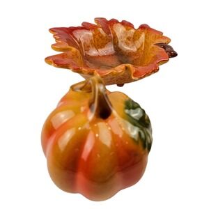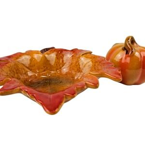 Ceramic Fall Decor Set Pumpkin Candy Dish Leaf Bowl Autumn Harvest Decor