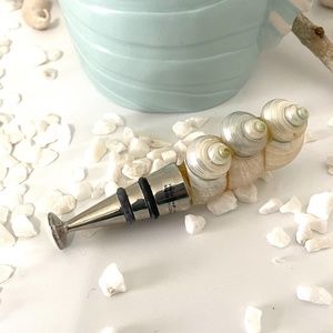 This beautiful Wine cooler has been made out of ceramic and is part of a nautical collection purchased from a specialy store while on nation. This piece has been with me since 2006 and it's so much fun to use when your having pool patries or as I have so many times just diplay it with the wine bottle as a nautical decoration. The colors are a mixture of a suttle mix of pale blue anad gree with white accents. The Wine topper is deorated with real sea shells that have been glued together.