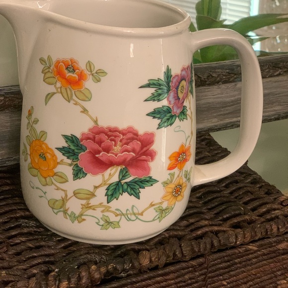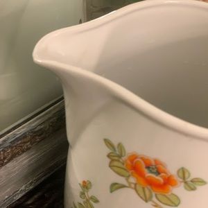 Beautiful Ceramic Floral Pitcher. 6" tall. 4 1/2" round. Holds appr 42 oz. In great condition. No chips or cracks.